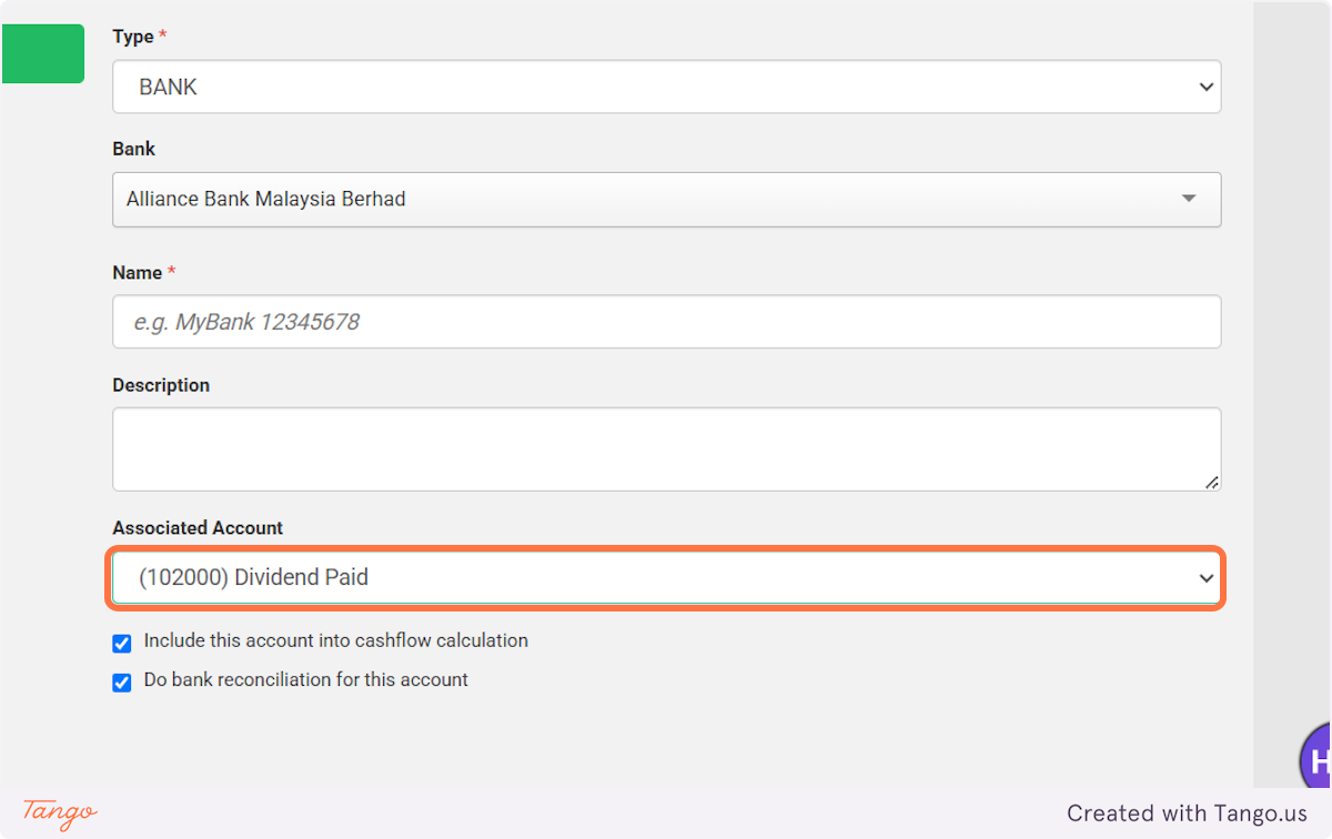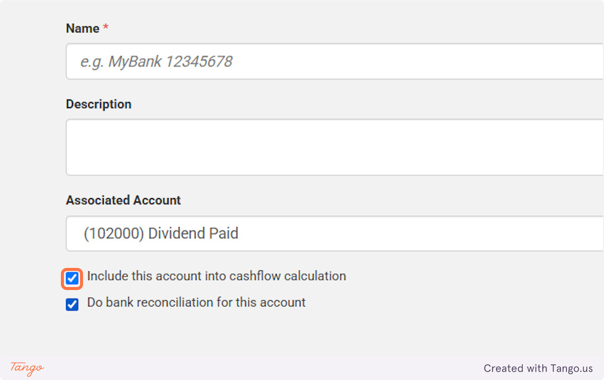 9. Check the box to include this account into cashflow calculation