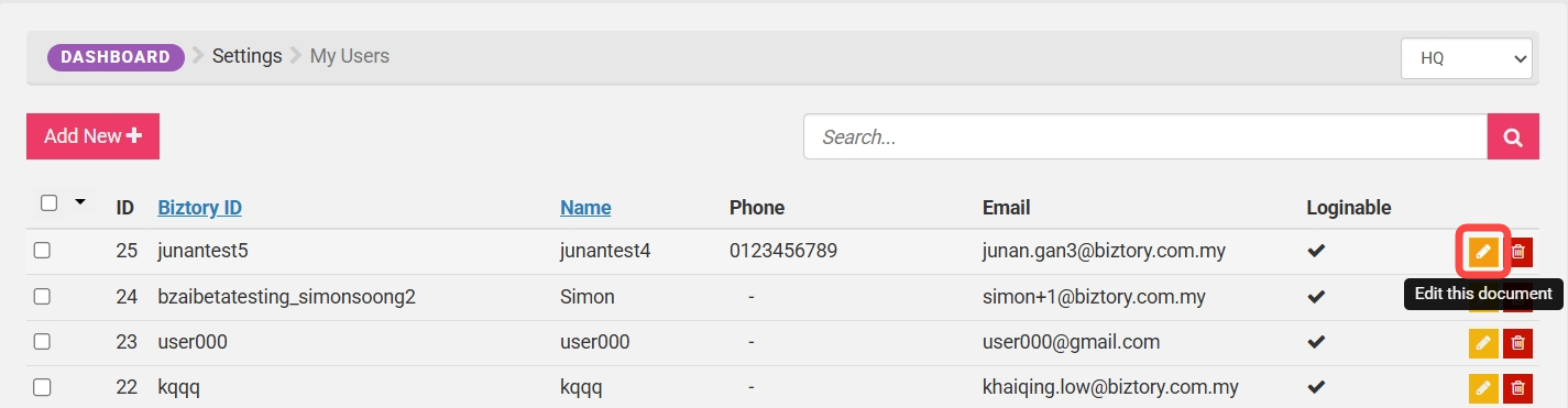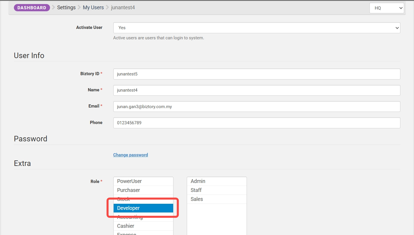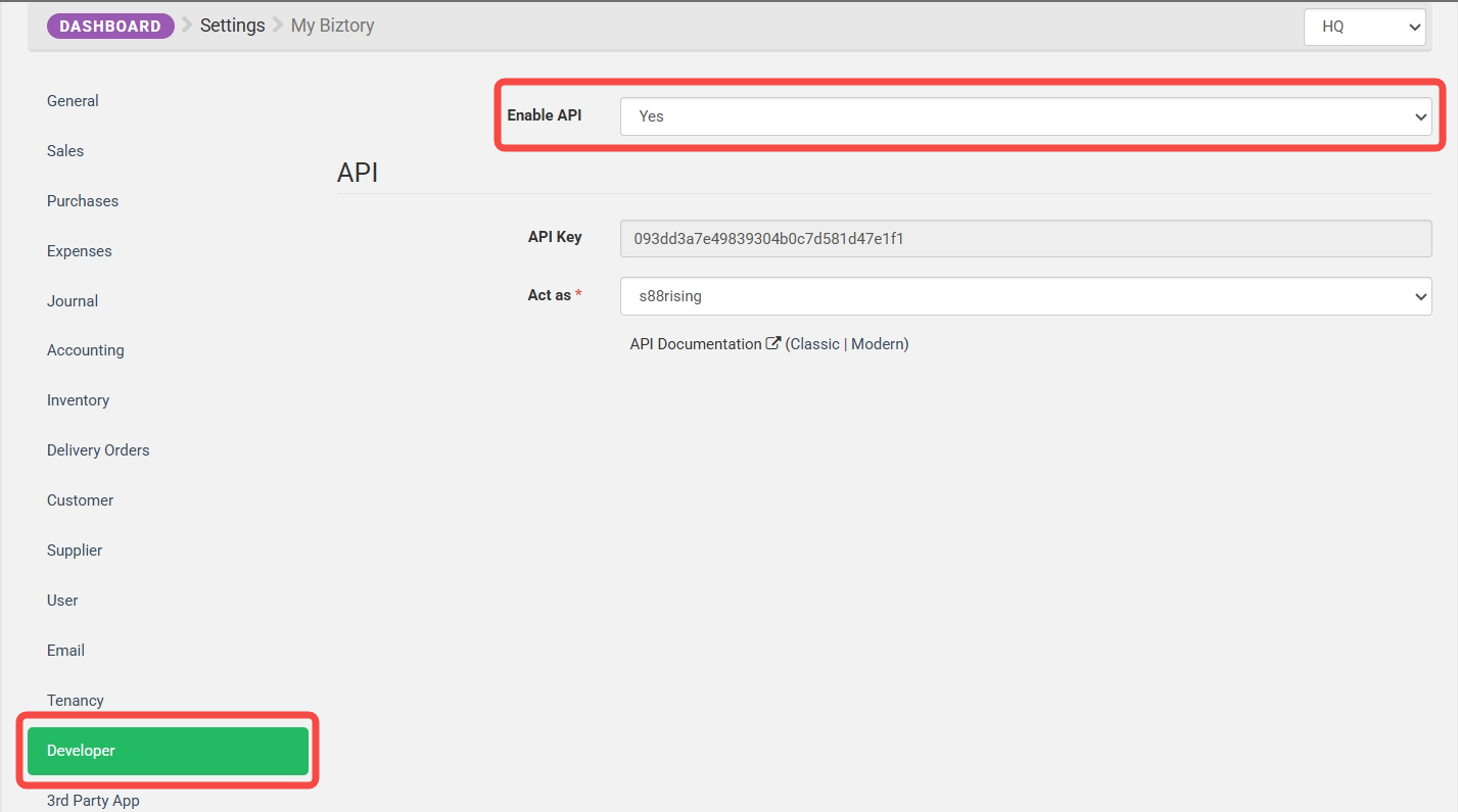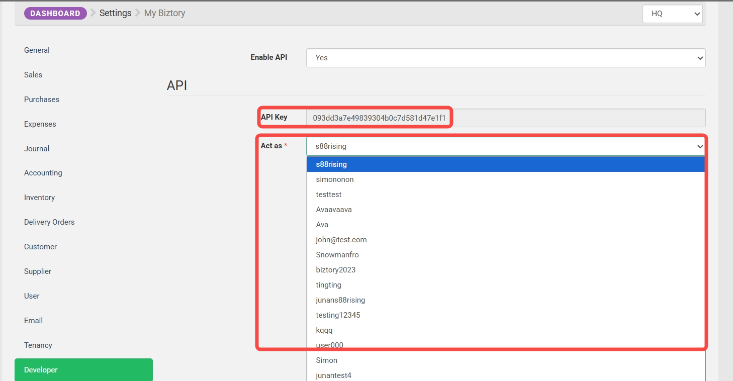 2. Find “Developer” in the list and choose “Yes” to enable API key.
