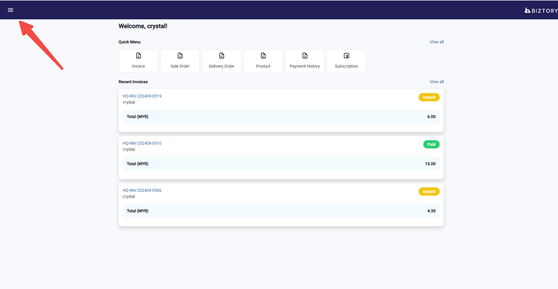 1. Click the "three line" Icon