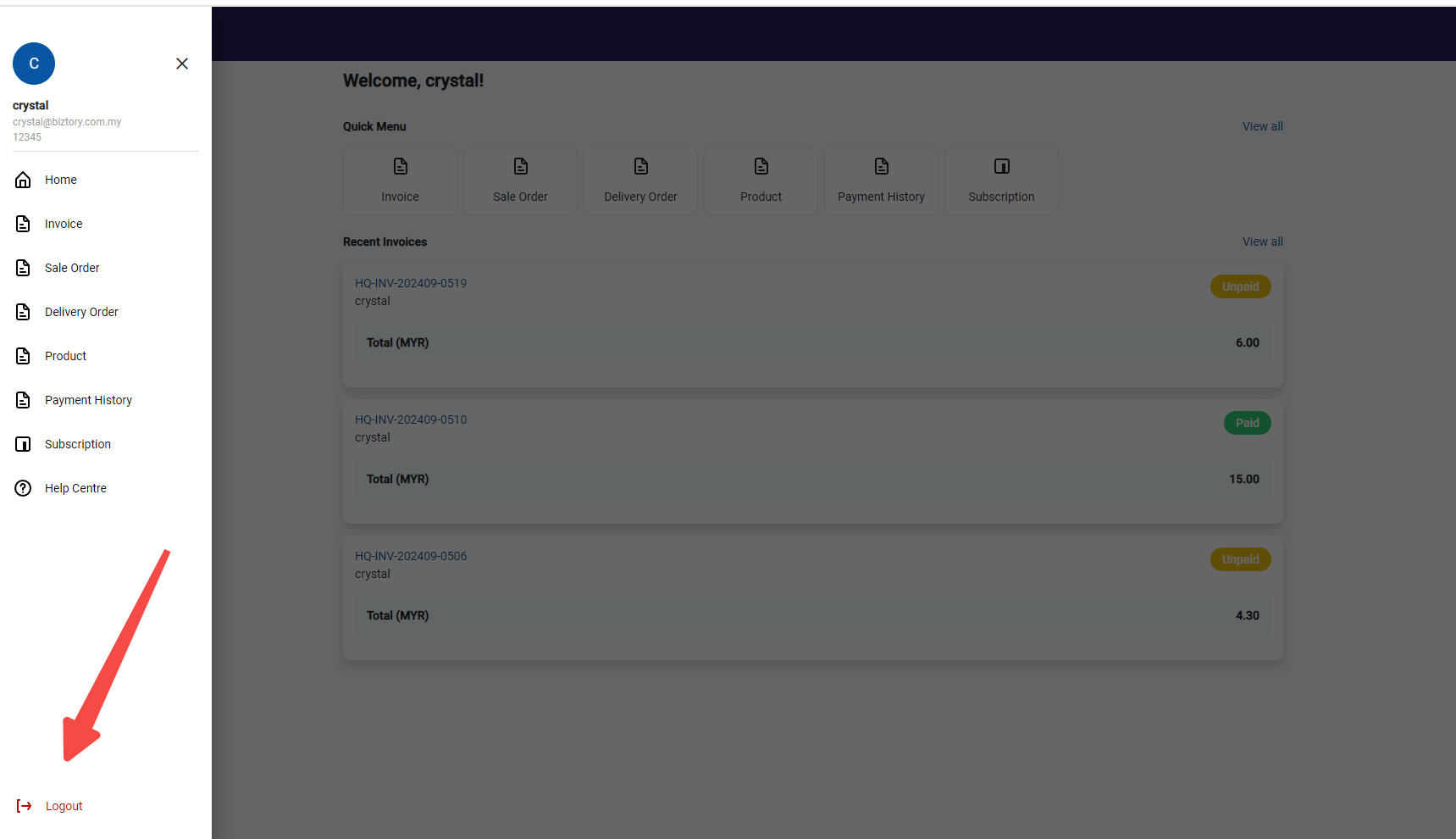 2, The log out button is located in the lower left corner; just click on it