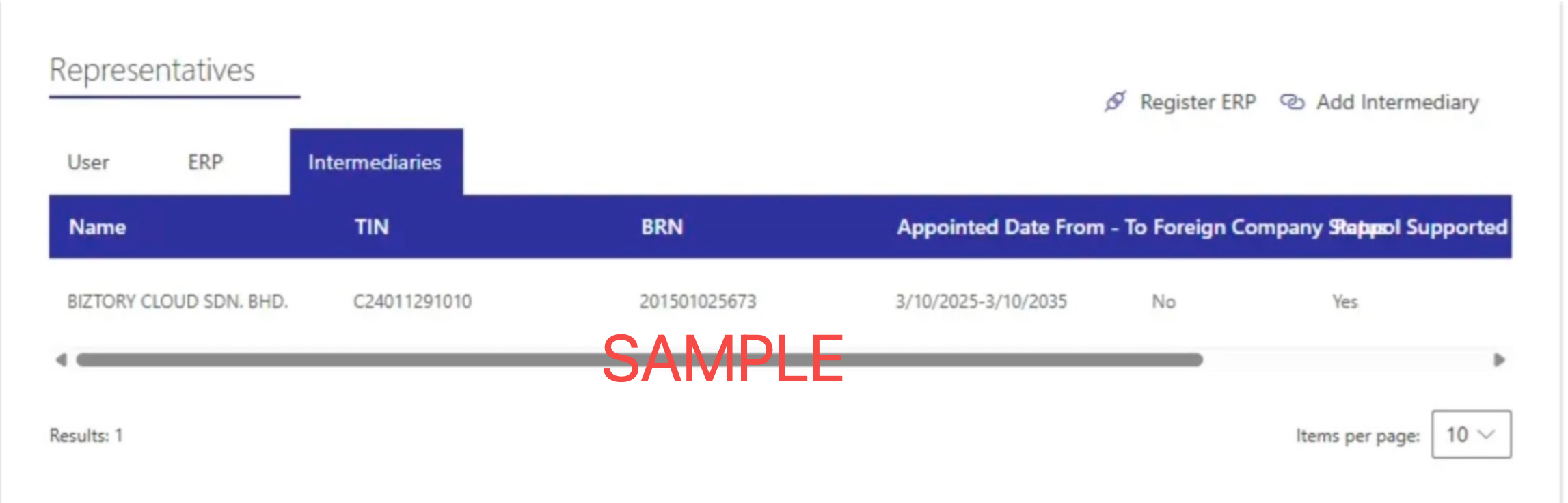 8. Please attachment the screen shot after you add Biztory as intermediary in your company Myinvois portal, so that we can process to link your account to Myinvois portal.