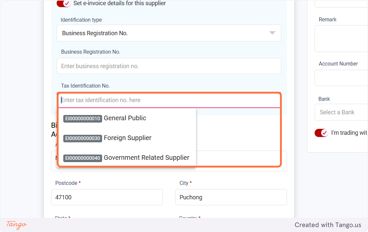 (If your supplier doesn't have TIN, you can select the General Public, Foreign Buyer, or Government Related Supplier)