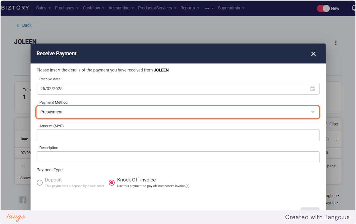 - To knock-off prepayment for supplier, please refer to: How to Knock-Off Prepayment for Supplier