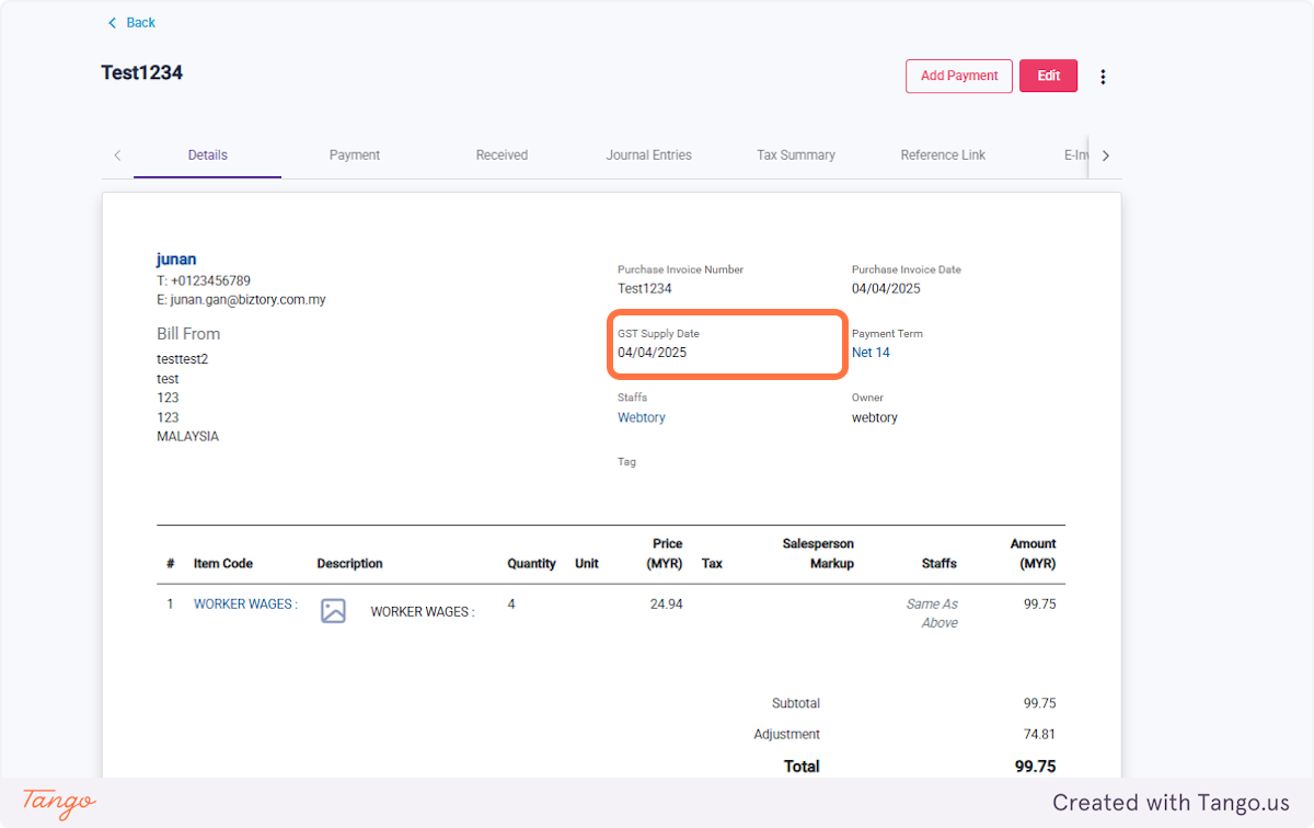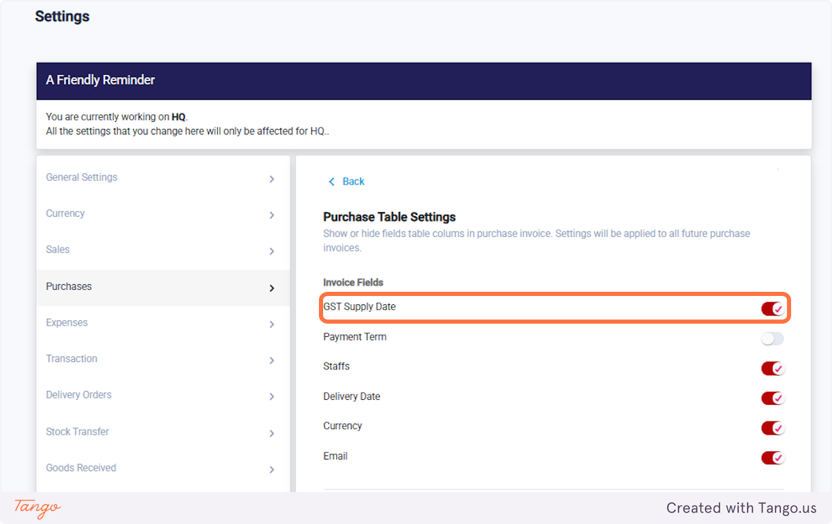 4. Check/uncheck GST Supply Date