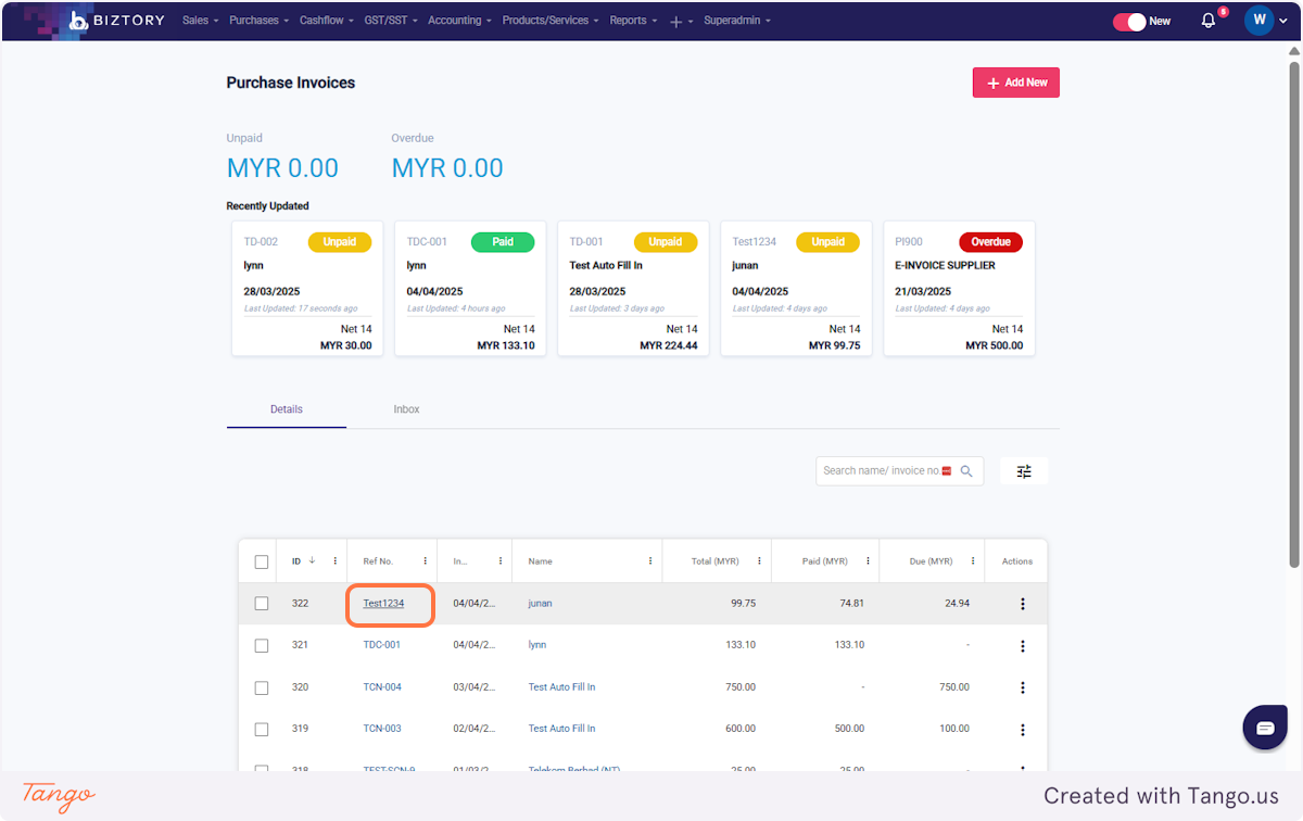 6. Click on a purchase invoice