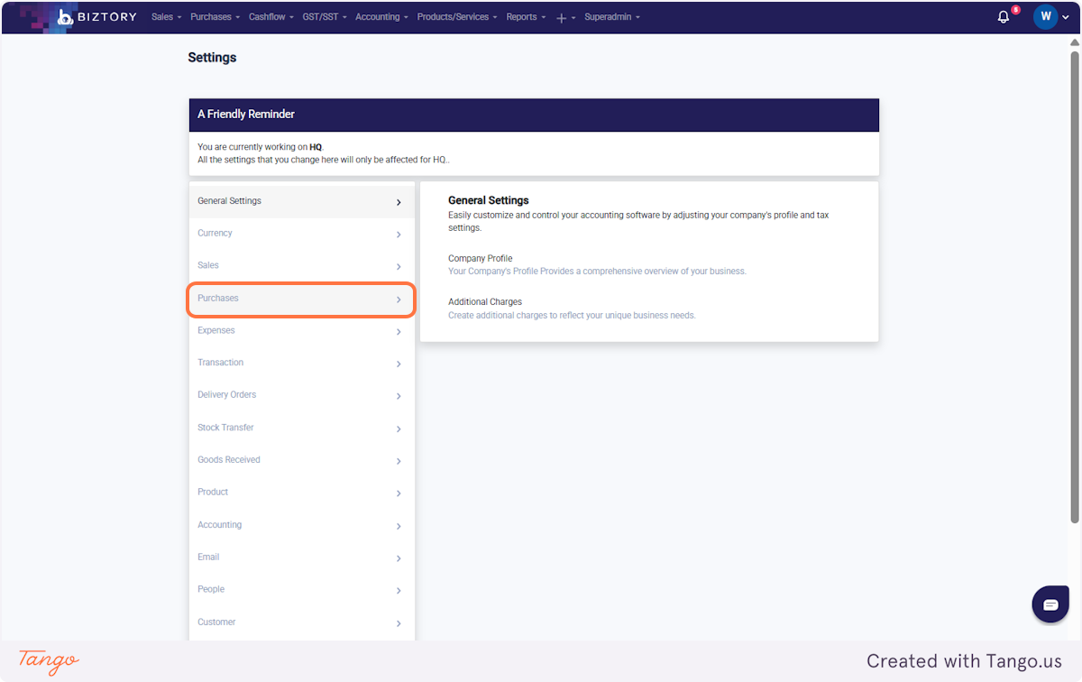 2. Click on Purchases