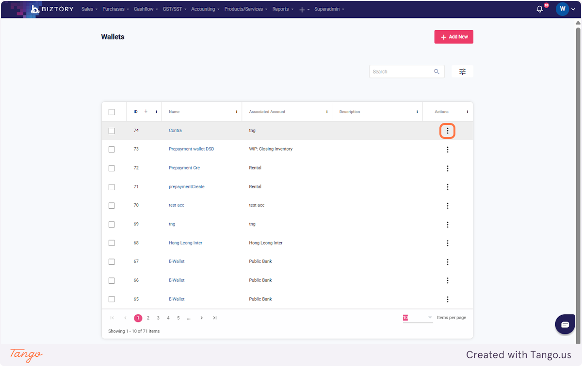 1. Click on Wallets
