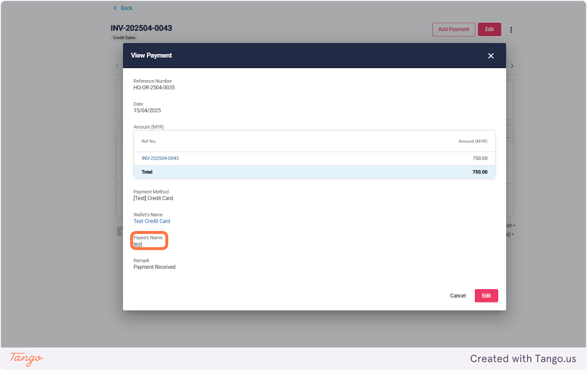 9. Select the Payee's Name
