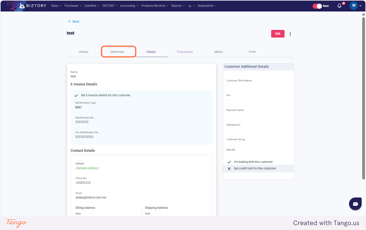 10. Click on Statement