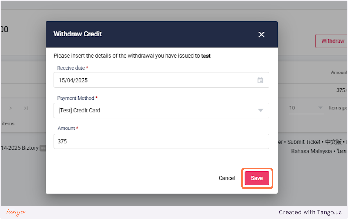 14. Click on Withdraw