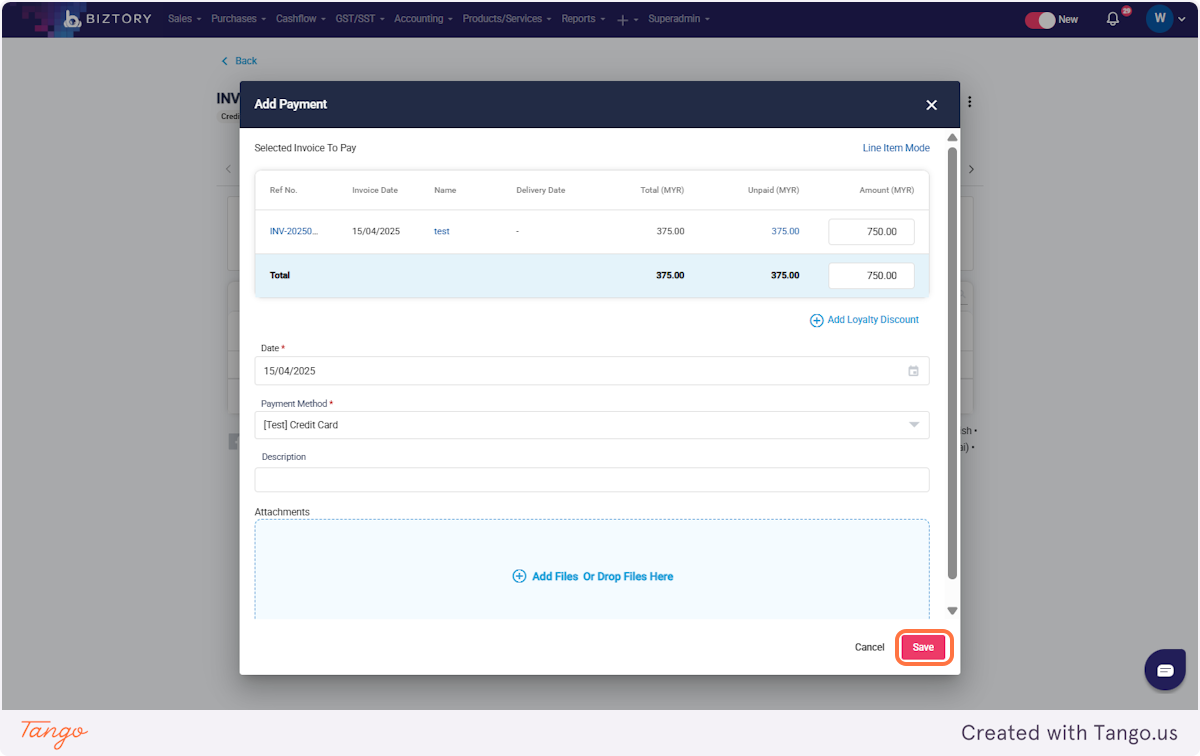 4. Click on Add Payment