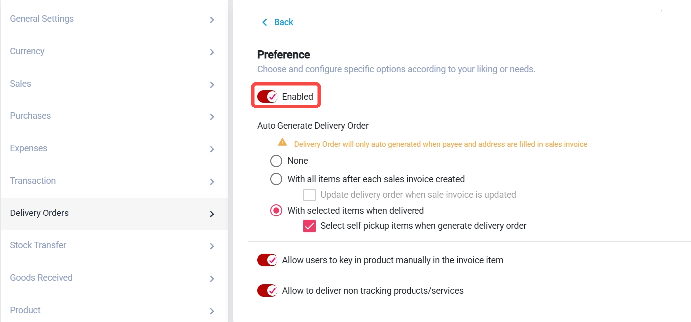 iii) Tick “Update DO When Sales Invoice is Updated”